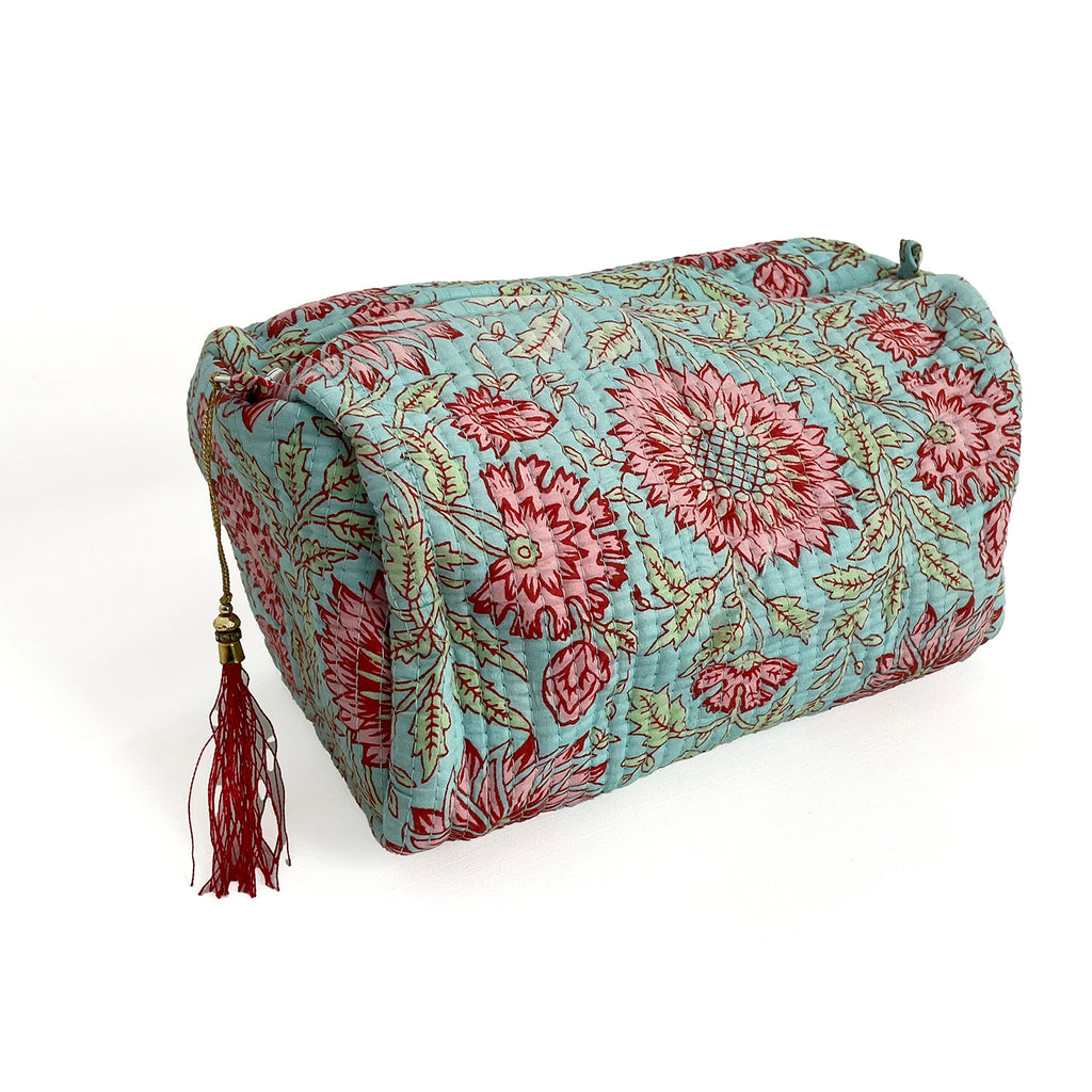 This cute block print sunflower floral quilted washbag features a fully waterproof lining and internal pockets,makes the perfect gift for a gardener.