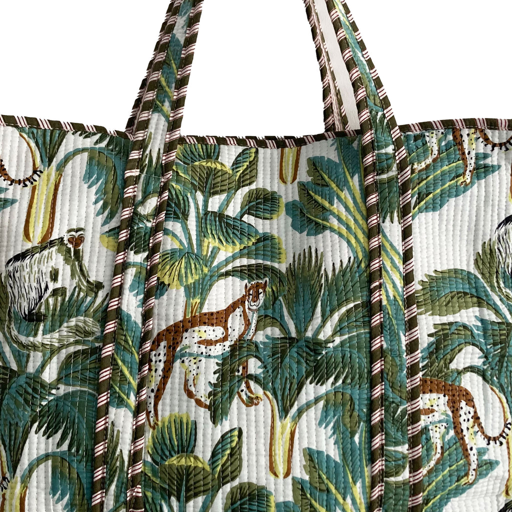 Each bag is one-of-a-kind due to its handmade nature, with slight variations in print placement. Each bag is individually made by artisans in Jaipur, India, using 100% Cotton and natural fibres for the quilting.
