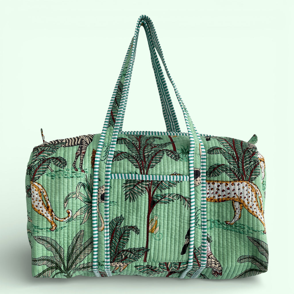 Jungle Print Weekend Duffle Print Bag in Mint Green