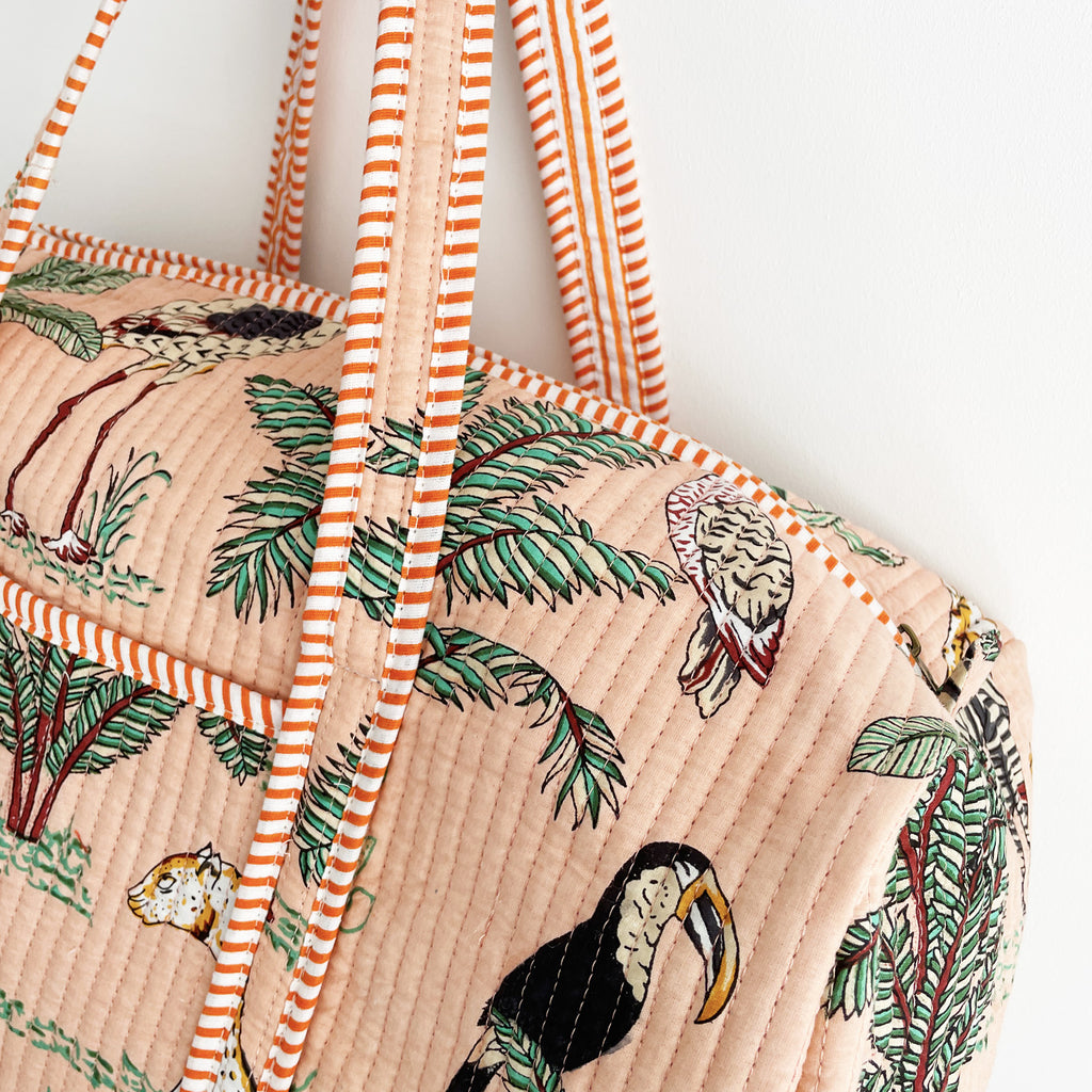 Jungle Print Weekend Duffle Print Bag in Peach
