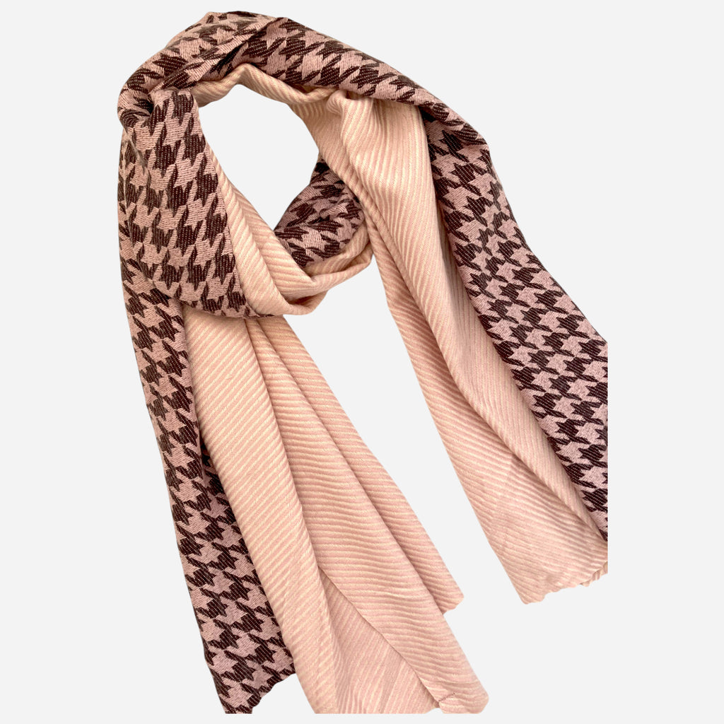 Houndstooth Cashmere Blend Winter Scarf - Pinks