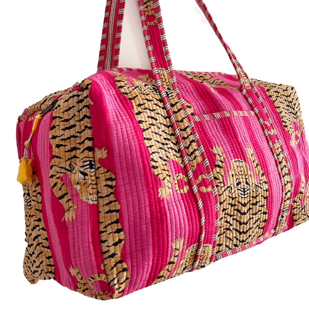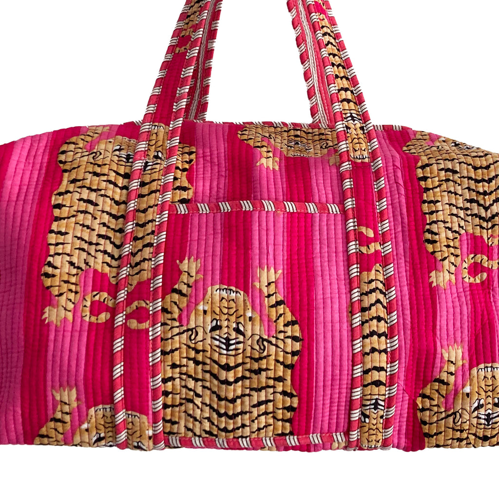 Tiger Print Weekend Duffle Print Bag in Bright Pink