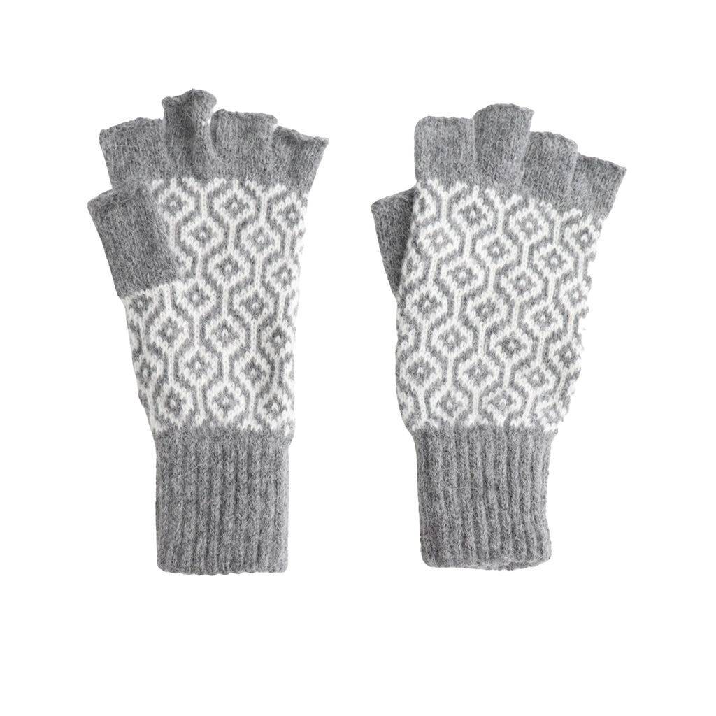 Our stylish Fingerless knit gloves feature a beautiful Geometric fairisle design in a variety of playful color options.